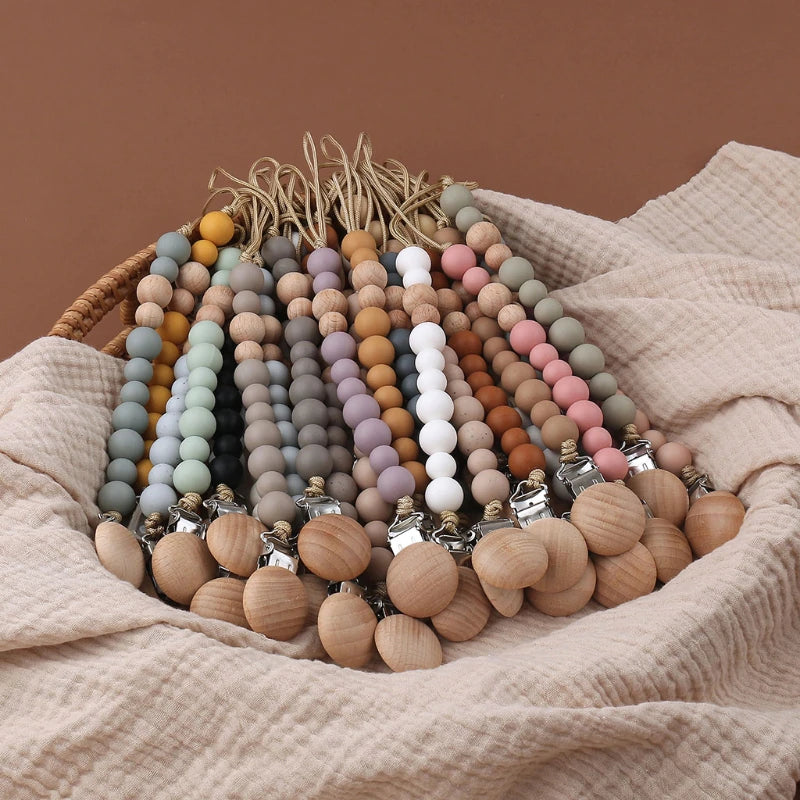 Attaches-sucettes en bois à perles en silicone pour bébé