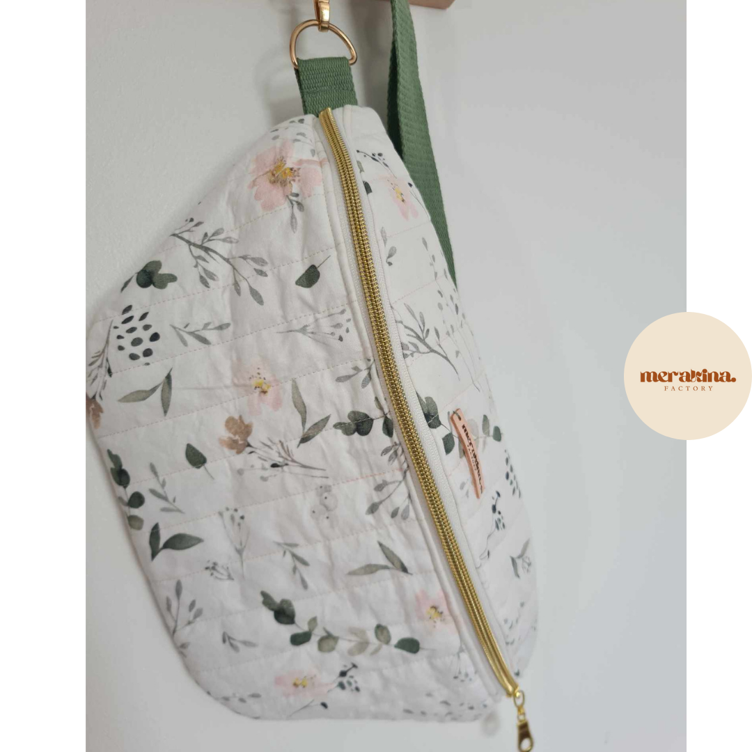 Le joli sac banane sera idéal pour une sortie avec vos indispensables : téléphone, clés, mouchoirs, lunettes et on pourra même y mettre une compote et des biscuits pour notre enfant.