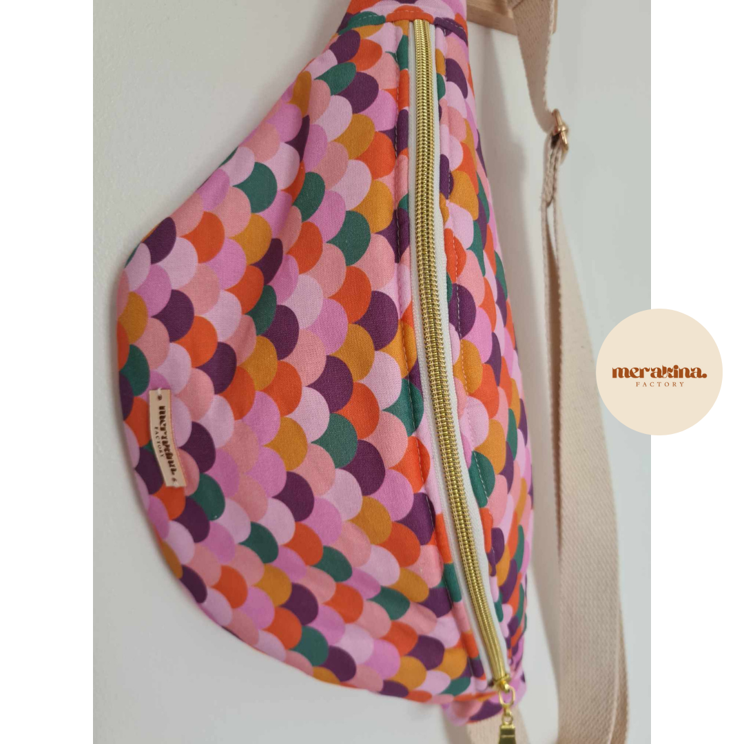 Le joli sac banane sera idéal pour une sortie avec vos indispensables : téléphone, clés, mouchoirs, lunettes et on pourra même y mettre une compote et des biscuits pour notre enfant.